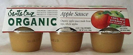 Organic applesauce in a convenient, durable 4 oz package. These new apple sauce cups are perfect for school lunches, picnics or any occasion when you're on the go and need a tasty, healthy snack. 100 % RDI of vitamin C and are certified organic.