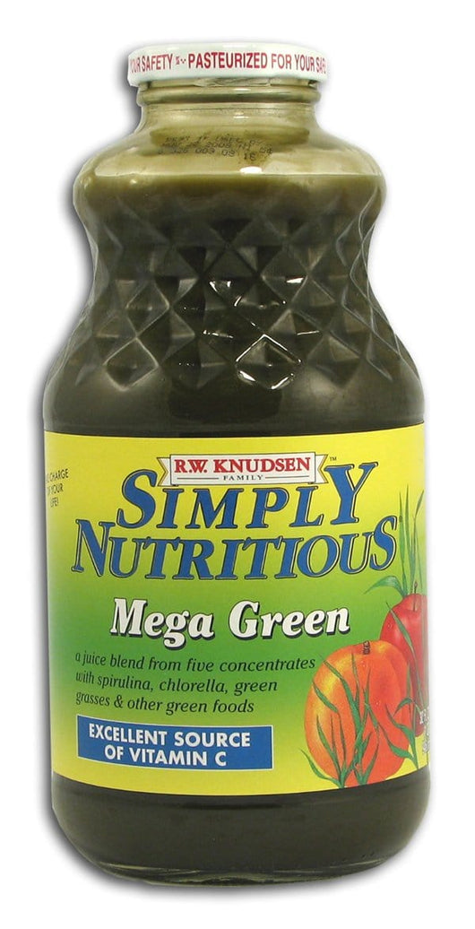 Mega Green. Blue green algae and other green foods have been nourishing the planet for thousands of years. Now Mega Green, from The R.W. Knudsen Family, blends several delicious fruit juices with the power of those green foods -- only the highest quality spirulina along with chlorella, barley and wheat grasses are included. The vitamin C helps maintain well-being for the body's immune system. Mega Green is just one of several Simply Nutritious juices that help you take charge of your life.