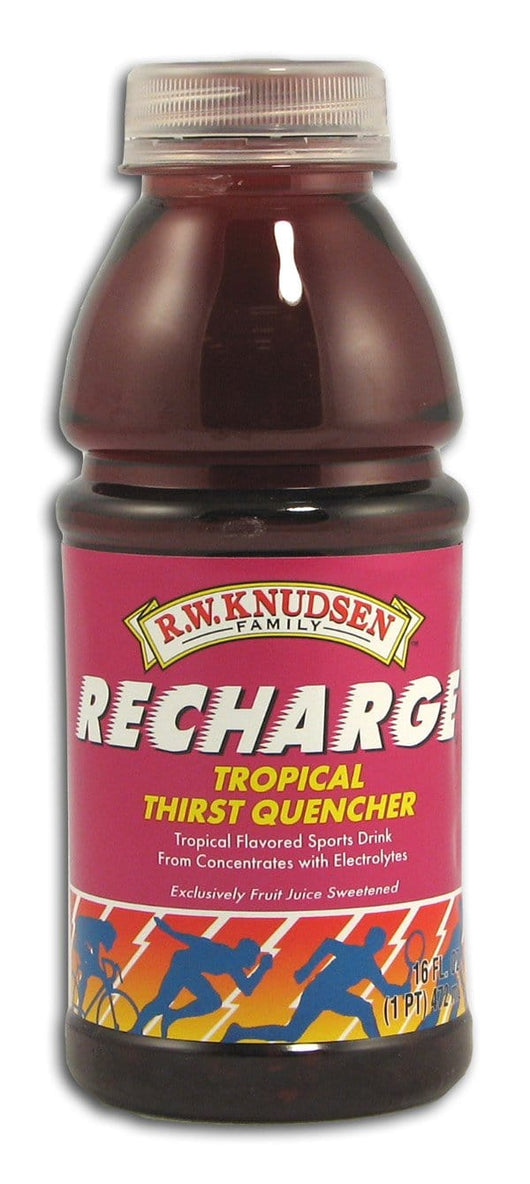 Recharge Tropical Thirst Quencher. Tropical flavored sports drink from concentrates with electrolytes. Exclusively fruit juice sweetened.
