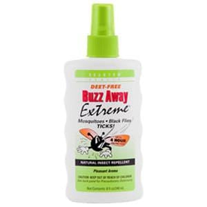 Buzz Away Extreme is the most powerful natural mosquito repellent available. This DEET-free formula, in our new 8 oz Family Size spray bottle, combines our essential plant oils with soy bean and geranium oil for the longest lasting natural protection available. Our mosquito repellent works for up to 4 hours against mosquitoes, up to 2.5 hours on ticks, and also repels fleas, gnats and flies. Non-greasy, pleasant aroma, great for families.