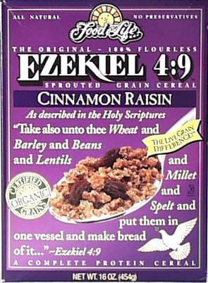 - Serving suggestions: Ezekiel 4:9 cereal can be enjoyed as a hot or cold breakfast cereal. The natural whole grain goodness and energy source of Ezekiel 4:9 cereal is a great way to start the day off right. Ezekiel 4:9, topped with fresh fruit also makes for a healthy snack anytime, such as after a workout or in the evening. For hot cereal lovers combine ½ cup Ezekiel 4:9 cereal with ½ cup rice milk, soy milk or fruit juice, (such as pineapple-coconut) in a small saucepan. Heat until desired temperature is achieved. Top with honey and fresh or dried fruit as desired.